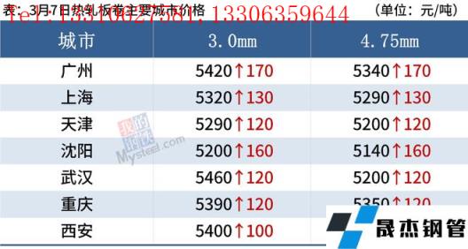 3月7日,國(guó)內(nèi)厚壁無(wú)縫鋼管市場(chǎng)全線上漲,唐山普方坯出廠價(jià)漲70報(bào)4810元/噸。今日黑色商品期貨市場(chǎng)大漲,厚壁無(wú)縫鋼管現(xiàn)貨市場(chǎng)成交明顯放量,無(wú)縫厚壁鋼管廠家及貿(mào)易商積極拉漲鋼價(jià)。