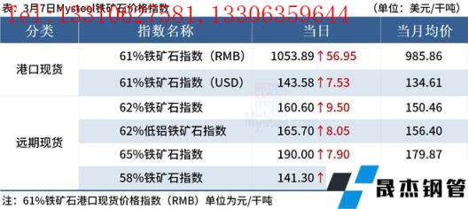 ◎3月7日,全國主港鐵礦石成交116.10萬噸,環比增87.3%;237家主流貿易商建材成交25.26萬噸,環比增52%。
