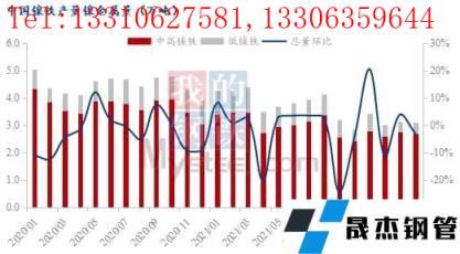 2022年2月國(guó)內(nèi)主要體現(xiàn)為中高鎳鐵小幅減量、低鎳鐵小幅增量。中高鎳鐵方面,雖然廣西及山東個(gè)別鎳鐵冶煉廠2月產(chǎn)量恢復(fù),但河北個(gè)別鎳鐵冶煉廠受到冬奧會(huì)影響停產(chǎn)至2月20號(hào),遼寧、江蘇部分工廠2月產(chǎn)線檢修;低鎳鐵方面,雖然河南某無(wú)縫厚壁鋼管廠家2月僅一臺(tái)高爐生產(chǎn),但廣東某無(wú)縫厚壁鋼管廠家高爐2月復(fù)產(chǎn),低鎳鐵總體呈環(huán)比增長(zhǎng)情況。