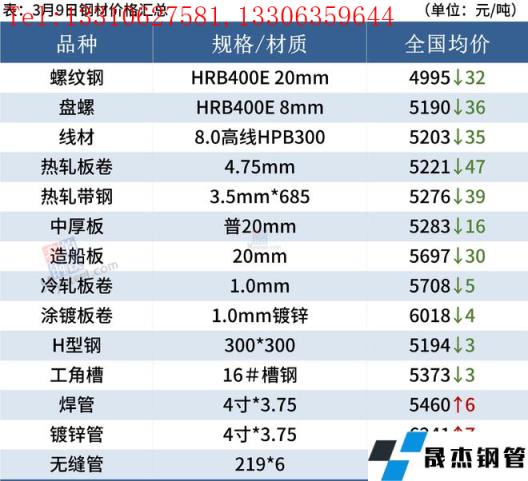 建筑厚壁無縫鋼管:3月9日,全國31個主要城市20mm三級抗震螺紋鋼均價4995元/噸,較上個交易日跌32元/噸。綜合來看,需求方面,目前下游工程項目資金情況尚未有明顯好轉(zhuǎn),采購剛需為主,市場投機情緒降溫后,整體成交表現(xiàn)較為一般。而期貨市場的波動影響市場心態(tài),因此預計10日國內(nèi)建筑厚壁無縫鋼管價格將繼續(xù)弱勢震蕩運行。