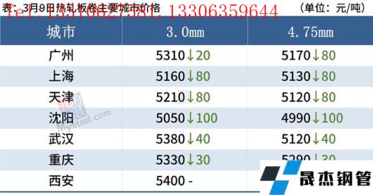 熱軋板卷:3月9日,全國24個主要城市4.75mm熱軋板卷均價5221元/噸,較上個交易日下跌47元/噸。黑色商品期貨市場震蕩下跌,早盤走弱,現(xiàn)貨報價小幅下跌,成交表現(xiàn)不佳,午后期卷繼續(xù)走低,下游采購量收縮,全天成交較差,商家套現(xiàn)意愿增強。綜合來看,前期熱卷期現(xiàn)貨價格大幅拉漲,市場恐高情緒濃厚,高價位成交受阻,需求釋放不及預期,商家欲獲利套現(xiàn),價格出現(xiàn)一定程度回落,但高成本和低庫存以及國內(nèi)外價差都將抑制鋼價大幅下跌。綜合來看,預計10日熱軋板卷價格或震蕩偏弱為主。