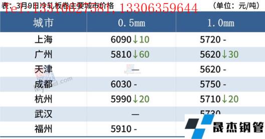 冷軋板卷:3月9日,全國24個主要城市1.0mm冷卷均價5708元/噸,較上個交易日下跌5元/噸。隨著黑色系震蕩走弱,市場價格步入下行通道,廣州、南昌、杭州等地率先下調(diào)價格,其余市場則多暗降出貨。下游“買漲不買跌”心態(tài)明顯,多持觀望態(tài)度,謹慎拿貨。綜合來看,故預計10日國內(nèi)冷軋板卷價格或?qū)⒗^續(xù)偏弱運行。