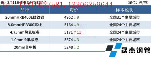 ◎ 3月11日,全國主港鐵礦石成交98.50萬噸,環比減11.3%;237家主流貿易商建材成交19.43萬噸,環比增11%。