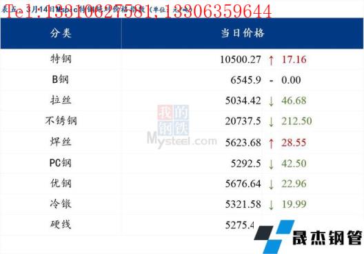 3月14日普鋼絕對價格指數變化:綜合指數5173.72,下跌51.11;螺紋鋼指數4919.18,下跌44.32;線材指數5253.36,下跌40.88;熱軋板卷指數5060.97,下跌82.06;冷軋板卷指數5545.47,下跌41.61;中厚板指數5157.56,下跌43.84。