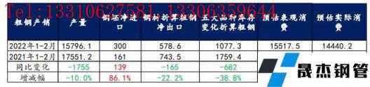 免責聲明:本網站(山東聊城晟杰無縫鋼管廠www.cuirutang.cn)刊載的“解讀:2022年1-2月粗鋼產銷同比雖有下滑,但消費表現明顯好于市場預期”等均源于網絡,版權歸原作者所有,且僅代表原作者觀點,本文所載信息僅供參考。轉載僅為學習與交流之目的,如無意中侵犯您的合法權益,請及時聯系刪除。本網站刊登此篇文章并不意味著本站贊同其觀點或證實其內容的真實性,我們不對其科學性、嚴肅性等作任何形式的保證。如果侵犯了您的版權,請盡快聯系我們予以撤銷,謝謝合作!