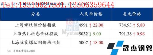 免責聲明:本網站(山東聊城晟杰無縫鋼管廠www.cuirutang.cn)刊載的“2022年03月17日日報:鋼材_無縫鋼管價格指數上漲21.4元/噸”等均源于網絡,版權歸原作者所有,且僅代表原作者觀點,本文所載信息僅供參考。轉載僅為學習與交流之目的,如無意中侵犯您的合法權益,請及時聯系刪除。本網站刊登此篇文章并不意味著本站贊同其觀點或證實其內容的真實性,我們不對其科學性、嚴肅性等作任何形式的保證。如果侵犯了您的版權,請盡快聯系我們予以撤銷,謝謝合作!