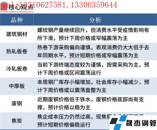 本周國(guó)內(nèi)多地?zé)o縫厚壁鋼管廠家運(yùn)輸受阻,鋼市成交量明顯下滑,短期廠內(nèi)庫(kù)存或進(jìn)一步累積,抑制鋼價(jià)反彈高度。不過(guò),電爐廠已陷入虧損,加之預(yù)期穩(wěn)增長(zhǎng)政策將出,鋼價(jià)底部支撐力度也強(qiáng)。當(dāng)前市場(chǎng)復(fù)雜多變,國(guó)內(nèi)疫情形勢(shì),穩(wěn)增長(zhǎng)政策落實(shí)情況以及國(guó)際局勢(shì)變化仍是主要關(guān)注點(diǎn)。
