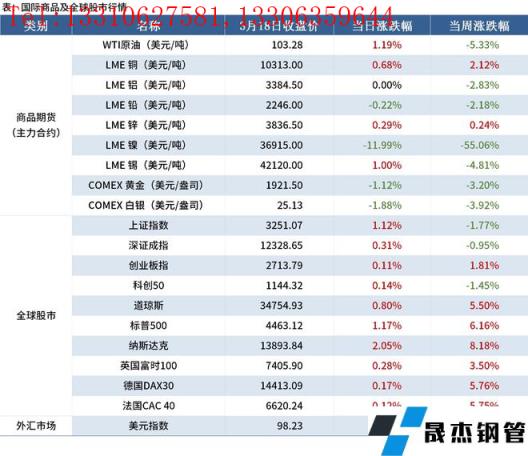 金融市場:倫鎳開盤后連續(xù)3日跌停,周度大跌55.06%;全球股市中,中國股市下跌,歐美股市上漲;美元指數(shù)收于98.23,下跌0.91%。
