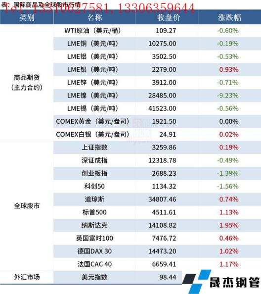 ◎中鋼協:2月份是厚壁無縫鋼管需求淡季,受供暖季、冬奧會限產影響,疊加天氣寒冷、部分地區新冠疫情反復等因素,國內市場厚壁無縫鋼管需求相對較弱,鋼鐵生產保持低水平。后期鋼價將呈小幅波動走勢。詳情>>