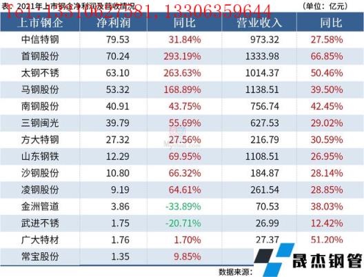 免責聲明:本網站(山東聊城晟杰無縫鋼管廠www.cuirutang.cn)刊載的“14家上市鋼企2021年實現凈利超410億元”等均源于網絡,版權歸原作者所有,且僅代表原作者觀點,本文所載信息僅供參考。轉載僅為學習與交流之目的,如無意中侵犯您的合法權益,請及時聯系刪除。本網站刊登此篇文章并不意味著本站贊同其觀點或證實其內容的真實性,我們不對其科學性、嚴肅性等作任何形式的保證。如果侵犯了您的版權,請盡快聯系我們予以撤銷,謝謝合作!