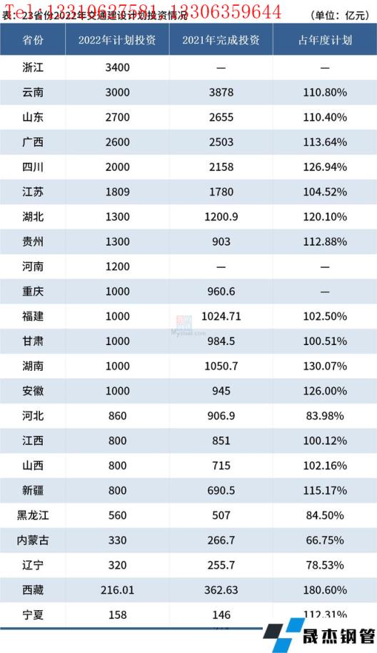 免責(zé)聲明:本網(wǎng)站(山東聊城晟杰無縫鋼管廠www.cuirutang.cn)刊載的“23省份2022年交通建設(shè)計(jì)劃投資近3萬億元”等均源于網(wǎng)絡(luò),版權(quán)歸原作者所有,且僅代表原作者觀點(diǎn),本文所載信息僅供參考。轉(zhuǎn)載僅為學(xué)習(xí)與交流之目的,如無意中侵犯您的合法權(quán)益,請(qǐng)及時(shí)聯(lián)系刪除。本網(wǎng)站刊登此篇文章并不意味著本站贊同其觀點(diǎn)或證實(shí)其內(nèi)容的真實(shí)性,我們不對(duì)其科學(xué)性、嚴(yán)肅性等作任何形式的保證。如果侵犯了您的版權(quán),請(qǐng)盡快聯(lián)系我們予以撤銷,謝謝合作!