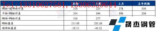 華東區(qū)域本周進(jìn)口礦價(jià)格震蕩下行,五一假期之后無縫厚壁鋼管廠家并未著急補(bǔ)庫,市場(chǎng)整體交投情緒不及預(yù)期。截止本周五,青島港口行情價(jià)格PB粉942元/噸,周環(huán)比下跌36元/噸;超特粉724元/噸,周環(huán)比下跌29元/噸;卡粉1146元/噸,周環(huán)比下跌26元/噸;PB塊1280元/噸,周環(huán)比上漲25元/噸,粉塊價(jià)差進(jìn)一步擴(kuò)大。