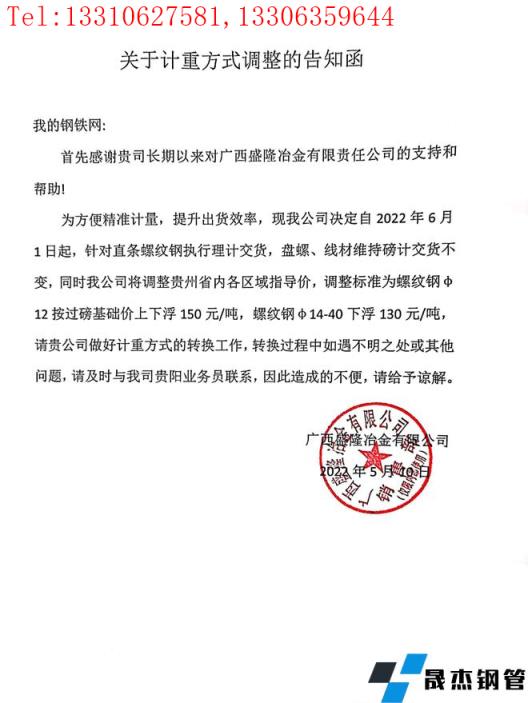 免責聲明:本網站(山東聊城晟杰無縫鋼管廠www.cuirutang.cn)刊載的“廣西盛隆冶金有限公司關于對貴州區域計重方式調整的告知函”等均源于網絡,版權歸原作者所有,且僅代表原作者觀點,本文所載信息僅供參考。轉載僅為學習與交流之目的,如無意中侵犯您的合法權益,請及時聯系刪除。本網站刊登此篇文章并不意味著本站贊同其觀點或證實其內容的真實性,我們不對其科學性、嚴肅性等作任何形式的保證。如果侵犯了您的版權,請盡快聯系我們予以撤銷,謝謝合作!