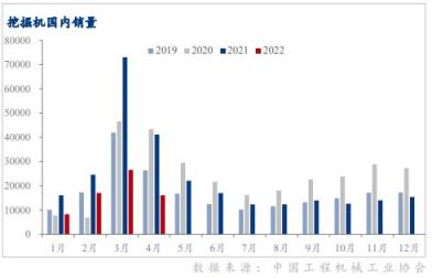 受疫情持續(xù)影響、房地產(chǎn)和基建工程開工率低迷等因素影響, 4月份工程機(jī)械的核心代表挖掘機(jī)銷售量同環(huán)比雙降。