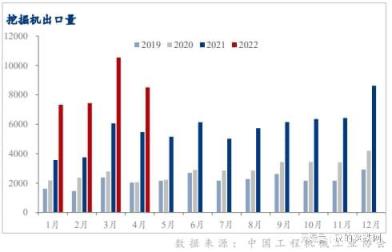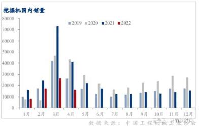 5月10日,中國(guó)工程機(jī)械工業(yè)協(xié)會(huì)發(fā)布對(duì)26家挖掘機(jī)制造企業(yè)統(tǒng)計(jì)數(shù)據(jù),2022年4月銷(xiāo)售各類(lèi)挖掘機(jī)24534臺(tái),同比下降47.3%;其中國(guó)內(nèi)16032臺(tái),同比下降61%;出口8502臺(tái),同比增長(zhǎng)55.2%。2022年1-4月,共銷(xiāo)售挖掘機(jī)101709臺(tái),同比下降41.4%;其中國(guó)內(nèi)67918臺(tái),同比下降56.1%;出口33791臺(tái),同比增長(zhǎng)78.9%。