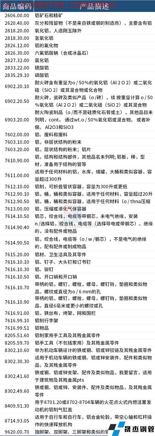 據不完全整理,美國征收中國產品關稅的清單,涉及鋁相關產品如下:
