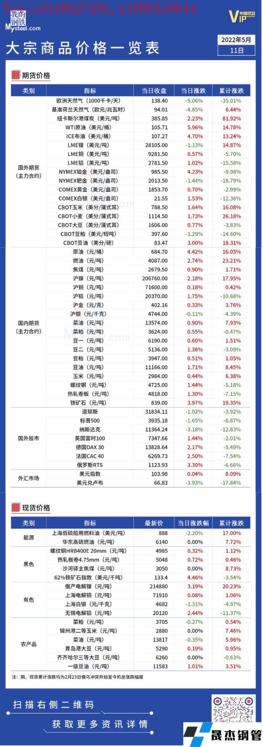 免責聲明:本網站(山東聊城晟杰無縫鋼管廠www.cuirutang.cn)刊載的“俄烏局勢丨大宗商品價格一覽表(5月11日)”等均源于網絡,版權歸原作者所有,且僅代表原作者觀點,本文所載信息僅供參考。轉載僅為學習與交流之目的,如無意中侵犯您的合法權益,請及時聯系刪除。本網站刊登此篇文章并不意味著本站贊同其觀點或證實其內容的真實性,我們不對其科學性、嚴肅性等作任何形式的保證。如果侵犯了您的版權,請盡快聯系我們予以撤銷,謝謝合作!