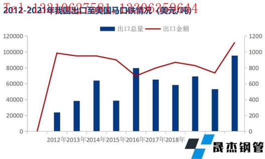 在之前的加征關(guān)稅從10%上調(diào)至25%的產(chǎn)品清單中就包含馬口鐵品種,2021年是近年來(lái)最大值9.5萬(wàn)噸,占當(dāng)年出口總量的7.04%。出口量前十位的國(guó)家分別為意大利、泰國(guó)、南非、墨西哥、美國(guó)、阿拉伯聯(lián)合酋長(zhǎng)國(guó)、西班牙、菲律賓、馬來(lái)西亞、沙特阿拉伯,美國(guó)出口總量排第五位。但從下圖2012-2021年我國(guó)馬口鐵出口至美國(guó)馬口鐵總量情況看出,在加征關(guān)稅后對(duì)我國(guó)出口至美國(guó)的量并未發(fā)生明顯變化,雖然2020年出現(xiàn)了明顯下滑,主要因?yàn)楫?dāng)年全球疫情爆發(fā)美國(guó)多企停工停產(chǎn)訂單減少,而當(dāng)時(shí)我國(guó)馬口鐵出口卻逆勢(shì)增長(zhǎng)同時(shí)轉(zhuǎn)移至其他國(guó)家,2021年同比增長(zhǎng)明顯。