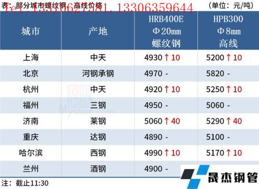 ◎濟南:12日早盤建材市場價格漲40。萊鋼螺紋4990,永鋒、石橫螺紋4990,永鋒、石橫盤螺5290。(單位:元/噸)