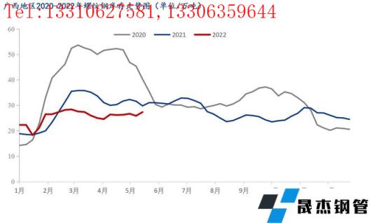 本周廣西地區建筑厚壁無縫鋼管社會庫存總量小幅增加。五一放假后,市場價格小幅拉漲,但是由于需求整體的偏弱,后期價格開始小幅回落。從需求來看,由于下游整體開工進度低,采購意愿不高,加上雨水天氣的影響,成交較,因而社會庫存小幅度增加,其中增加的資源主要在柳州市場。其中商家對后市現貨價格看空情緒較為熱烈,出貨意愿較高,以價換量效果并不理想,成交依舊還是偏弱。無縫厚壁鋼管廠家方面,目前本地無縫厚壁鋼管廠家建筑厚壁無縫鋼管生產基本保持穩定,由于價格的偏弱運行,代理的提貨積極性也不高,廠庫也有小幅度增加。截至目前,廣西市場庫存建筑厚壁無縫鋼管32.65萬噸,較上周相比增加1.65萬噸。