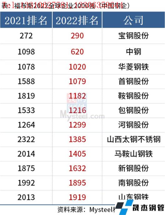 免責聲明:本網(wǎng)站(山東聊城晟杰無縫鋼管廠www.cuirutang.cn)刊載的“中國12家鋼企上榜福布斯2022全球企業(yè)2000強”等均源于網(wǎng)絡(luò),版權(quán)歸原作者所有,且僅代表原作者觀點,本文所載信息僅供參考。轉(zhuǎn)載僅為學(xué)習與交流之目的,如無意中侵犯您的合法權(quán)益,請及時聯(lián)系刪除。本網(wǎng)站刊登此篇文章并不意味著本站贊同其觀點或證實其內(nèi)容的真實性,我們不對其科學(xué)性、嚴肅性等作任何形式的保證。如果侵犯了您的版權(quán),請盡快聯(lián)系我們予以撤銷,謝謝合作!