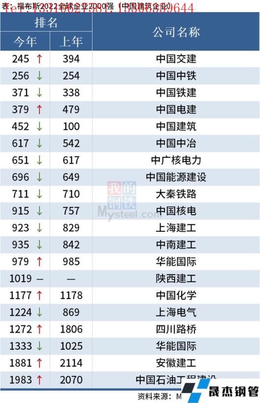 免責聲明:本網站(山東聊城晟杰無縫鋼管廠www.cuirutang.cn)刊載的“中國20家建筑企業上榜福布斯2022全球企業2000強”等均源于網絡,版權歸原作者所有,且僅代表原作者觀點,本文所載信息僅供參考。轉載僅為學習與交流之目的,如無意中侵犯您的合法權益,請及時聯系刪除。本網站刊登此篇文章并不意味著本站贊同其觀點或證實其內容的真實性,我們不對其科學性、嚴肅性等作任何形式的保證。如果侵犯了您的版權,請盡快聯系我們予以撤銷,謝謝合作!
