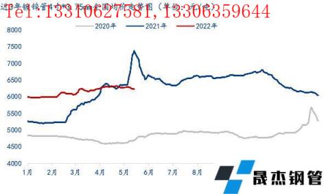 概述:5月以來,在美聯儲加息的影響下,大宗商品整體走弱,截至5月15日,鍍鋅管4寸*3.75mm規格全國均價為6222元/噸,同比去年下降1089元/噸,較年初上漲224元/噸??v觀去年行情,鍍鋅管價格在5月13日達到近年來的新高7381元/噸后,走出一波斷崖式下跌行情,半個月以內下跌近千元。而今年5月下半月鍍鋅管價格如何運行,筆者從成本角度來看當前鍍鋅管價格運行邏輯