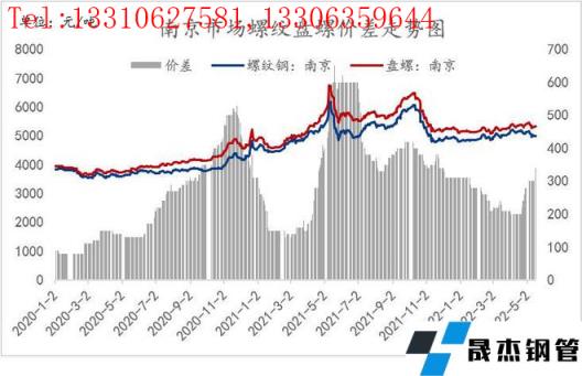 2、從目前省內(nèi)部分無縫厚壁鋼管廠家生產(chǎn)情況來看,考慮到盤螺利潤明顯好于螺紋、優(yōu)線,部分無縫厚壁鋼管廠家進(jìn)而進(jìn)行產(chǎn)線調(diào)劑,具體產(chǎn)線由生產(chǎn)優(yōu)線轉(zhuǎn)換為生產(chǎn)盤螺,同時由于目前無縫厚壁鋼管廠家利潤整體偏低,且螺紋銷售壓力仍存,鐵水或存分配轉(zhuǎn)產(chǎn)情況,由螺紋流向盤螺,近期市場對于盤螺的需求仍呈現(xiàn)上升態(tài)勢,存量需求隨著疫情的逐漸轉(zhuǎn)好也將持續(xù)釋放,預(yù)計省內(nèi)螺紋盤螺價差將繼續(xù)呈現(xiàn)擴大的態(tài)勢。