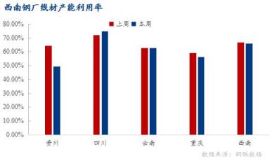 重慶區(qū)域:一無縫厚壁鋼管廠家因坯料不足,短期停產(chǎn),線材產(chǎn)能利用率56.36%,環(huán)比下降2.89%;開工率50%,環(huán)比下降50%;周產(chǎn)量1.95萬噸,環(huán)比減少0.1萬噸。