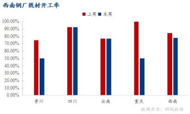貴州區(qū)域:個(gè)別無縫厚壁鋼管廠家停產(chǎn),產(chǎn)量小幅下降,線材產(chǎn)能利用率49.25%,環(huán)比下降14.99%;開工率50%,環(huán)比下降25%;周產(chǎn)量2.3萬噸,環(huán)比減少0.7萬噸。