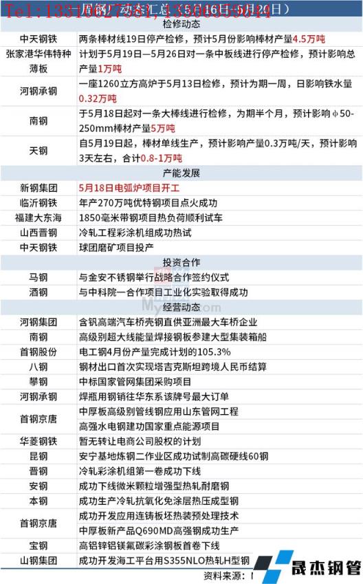 據(jù)不完全統(tǒng)計,本周(5月16日-5月21日)有4家無縫厚壁鋼管廠家發(fā)布檢修計劃,具體如下: