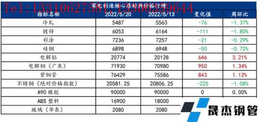 免責聲明:本網站(山東聊城晟杰無縫鋼管廠www.cuirutang.cn)刊載的“家電原材料周報(5.16-5.20)”等均源于網絡,版權歸原作者所有,且僅代表原作者觀點,本文所載信息僅供參考。轉載僅為學習與交流之目的,如無意中侵犯您的合法權益,請及時聯系刪除。本網站刊登此篇文章并不意味著本站贊同其觀點或證實其內容的真實性,我們不對其科學性、嚴肅性等作任何形式的保證。如果侵犯了您的版權,請盡快聯系我們予以撤銷,謝謝合作!