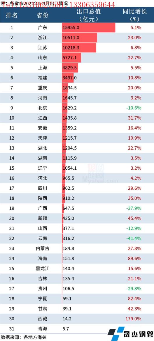免責聲明:本網站(山東聊城晟杰無縫鋼管廠www.cuirutang.cn)刊載的“前4月全國分省市外貿數據出爐,19地出口增速超10%”等均源于網絡,版權歸原作者所有,且僅代表原作者觀點,本文所載信息僅供參考。轉載僅為學習與交流之目的,如無意中侵犯您的合法權益,請及時聯系刪除。本網站刊登此篇文章并不意味著本站贊同其觀點或證實其內容的真實性,我們不對其科學性、嚴肅性等作任何形式的保證。如果侵犯了您的版權,請盡快聯系我們予以撤銷,謝謝合作!