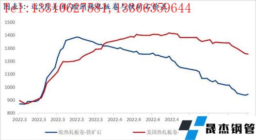 雖然4月上旬全球成品鋼價格延續(xù)上漲,致使北美、歐洲、土耳其等主要產鋼國日均產量小幅上漲(3-5%),但4月下旬成品鋼跌幅明顯大于原材料尤其是鐵礦石下跌幅度。表5為近三月美國和歐洲熱卷價格與鐵礦石價差,該價差僅取主流價格且未經嚴格計算不代表生產成本,僅作利潤變化的趨勢參考??梢姎W洲熱軋板卷與鐵礦石價差在3月中下旬達到高點后,在整個4、5月份連續(xù)下降,相比之下該價差在美國的降幅相對較小。