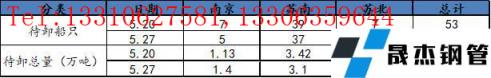 此次調研選取了南京、蘇州、無錫、常州、南通、徐州、揚州、鹽城八個城市,以建筑厚壁無縫鋼管為主要庫存的20家倉庫。通過匯總了解,當前樣本倉庫碼頭累計待卸船只總計48只,待卸總量達5.47萬噸。