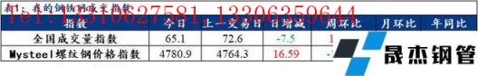 訊:全國建筑厚壁無縫鋼管成交量監(jiān)測(cè),成交量相對(duì)指數(shù)來看,全國65.1減7.5,北方53減11.9,華東81.7減3.1,南方55.2減9.5。今日螺紋鋼價(jià)格指數(shù)4780.9,較上一交易日增16.59。