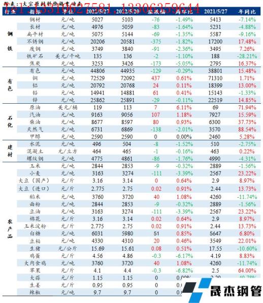 免責聲明:本網站(山東聊城晟杰無縫鋼管廠www.cuirutang.cn)刊載的“周報:大宗工業原材料、能源及農產品價格周報(5.23-5.27)”等均源于網絡,版權歸原作者所有,且僅代表原作者觀點,本文所載信息僅供參考。轉載僅為學習與交流之目的,如無意中侵犯您的合法權益,請及時聯系刪除。本網站刊登此篇文章并不意味著本站贊同其觀點或證實其內容的真實性,我們不對其科學性、嚴肅性等作任何形式的保證。如果侵犯了您的版權,請盡快聯系我們予以撤銷,謝謝合作!