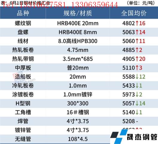 建筑厚壁無縫鋼管:6月1日,全國31個主要城市20mm三級抗震螺紋鋼均價4802元/噸,較上個交易日漲16元/噸。國內建筑厚壁無縫鋼管價格整體延續31日漲勢。短期來看,當前市場信心有所恢復,加之臨近端午小長假,市場存在節前備貨預期。因此預計2日國內建筑厚壁無縫鋼管價格將延續小幅上漲運行態勢。