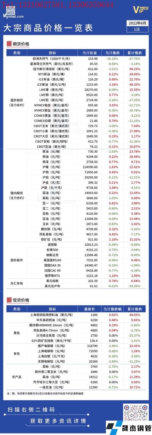 免責聲明:本網站(山東聊城晟杰無縫鋼管廠www.cuirutang.cn)刊載的“俄烏局勢丨大宗商品價格一覽表(6月1日)”等均源于網絡,版權歸原作者所有,且僅代表原作者觀點,本文所載信息僅供參考。轉載僅為學習與交流之目的,如無意中侵犯您的合法權益,請及時聯系刪除。本網站刊登此篇文章并不意味著本站贊同其觀點或證實其內容的真實性,我們不對其科學性、嚴肅性等作任何形式的保證。如果侵犯了您的版權,請盡快聯系我們予以撤銷,謝謝合作!