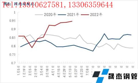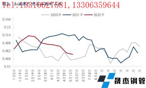 除了粉塊球的比例之外,由于利潤的變化無縫厚壁鋼管廠家也在持續壓縮廢鋼的使用比例;截至5月27日,核心數據中顯示,無縫厚壁鋼管廠家廢鋼的使用比例8.3%,較春節后下降1.4個百分點,同比去年同期降3.7個百分點,處于近三年的偏低水平。