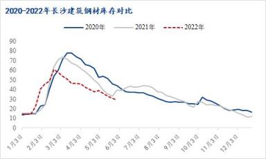 據(jù)統(tǒng)計(jì),截止6月2日長(zhǎng)沙建筑厚壁無(wú)縫鋼管庫(kù)存總量為29.12萬(wàn)噸,其中螺紋鋼占比74%,線盤占比26%。該庫(kù)存水平較去年同期低10.58萬(wàn)噸。由于浙江、江蘇、湖北等外省厚壁無(wú)縫鋼管對(duì)長(zhǎng)沙投放量明顯減少,因此長(zhǎng)沙庫(kù)存呈現(xiàn)持續(xù)下降趨勢(shì)。