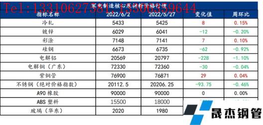 免責聲明:本網站(山東聊城晟杰無縫鋼管廠www.cuirutang.cn)刊載的“家電原材料周報(5.30-6.2)”等均源于網絡,版權歸原作者所有,且僅代表原作者觀點,本文所載信息僅供參考。轉載僅為學習與交流之目的,如無意中侵犯您的合法權益,請及時聯系刪除。本網站刊登此篇文章并不意味著本站贊同其觀點或證實其內容的真實性,我們不對其科學性、嚴肅性等作任何形式的保證。如果侵犯了您的版權,請盡快聯系我們予以撤銷,謝謝合作!