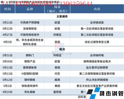 免責(zé)聲明:本網(wǎng)站(山東聊城晟杰無縫鋼管廠www.cuirutang.cn)刊載的“4-5月國外對華鋼鐵產(chǎn)品發(fā)起反傾銷調(diào)查情況”等均源于網(wǎng)絡(luò),版權(quán)歸原作者所有,且僅代表原作者觀點(diǎn),本文所載信息僅供參考。轉(zhuǎn)載僅為學(xué)習(xí)與交流之目的,如無意中侵犯您的合法權(quán)益,請及時(shí)聯(lián)系刪除。本網(wǎng)站刊登此篇文章并不意味著本站贊同其觀點(diǎn)或證實(shí)其內(nèi)容的真實(shí)性,我們不對其科學(xué)性、嚴(yán)肅性等作任何形式的保證。如果侵犯了您的版權(quán),請盡快聯(lián)系我們予以撤銷,謝謝合作!