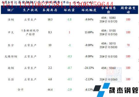 江蘇優(yōu)特無縫厚壁鋼管廠家棒材總庫存44.4萬噸,較上周減少2.9萬噸,環(huán)比降6.13%,較去年同期增加7.24萬噸,同比增19.48%,目前省中天1條棒材線檢修,其余無縫厚壁鋼管廠家正常生產。