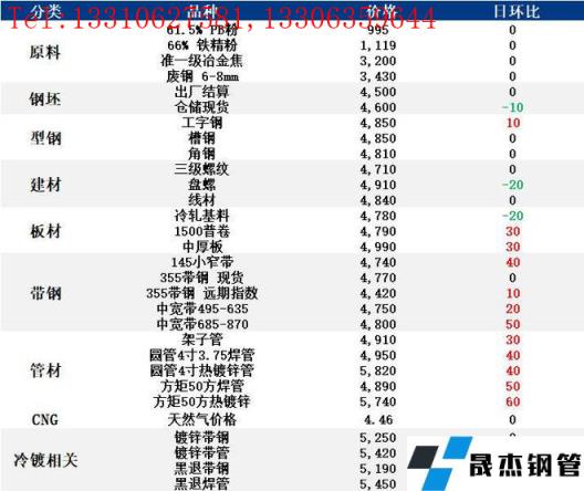 表:6月6日唐山鋼市主要品種價格一覽(單位:元/噸)