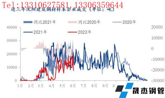 原因1:節(jié)前備貨發(fā)力過猛,提前消費節(jié)后需求。受節(jié)前價格趨強影響,下游工程節(jié)前備貨需求提升后沈陽建筑厚壁無縫鋼管市場成交大幅放量,統(tǒng)計的節(jié)前最后一個工作日累計成交2萬噸、較2021年同比較少0.34萬噸、較2020年同比增加0.55萬噸,但縱向比對來看,受疫情防控及房地產(chǎn)政策調(diào)控影響波及,2022年日均成交水平較2021年同比減少0.45萬噸、較2020年同比減少0.15萬噸,以此評估來看,2022年端午節(jié)前沈陽成交放量過大、在一定程度上提前消費了節(jié)后需求。