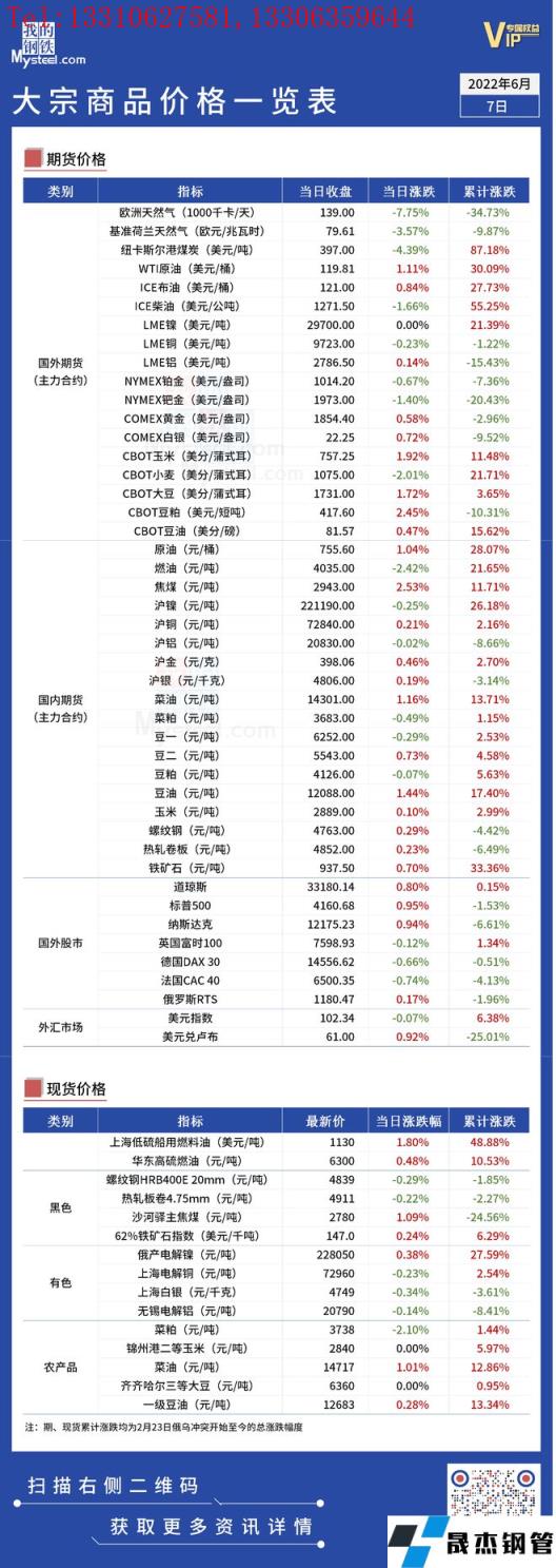 免責聲明:本網站(山東聊城晟杰無縫鋼管廠www.cuirutang.cn)刊載的“俄烏局勢丨大宗商品價格一覽表(6月7日)”等均源于網絡,版權歸原作者所有,且僅代表原作者觀點,本文所載信息僅供參考。轉載僅為學習與交流之目的,如無意中侵犯您的合法權益,請及時聯系刪除。本網站刊登此篇文章并不意味著本站贊同其觀點或證實其內容的真實性,我們不對其科學性、嚴肅性等作任何形式的保證。如果侵犯了您的版權,請盡快聯系我們予以撤銷,謝謝合作!