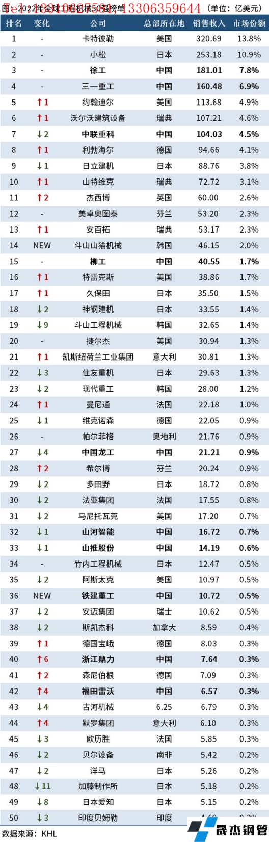 近日,世界領先的工程信息提供商英國KHL集團發布了2022全球工程機械制造商50強排行榜。詳細梳理了該榜單內容。