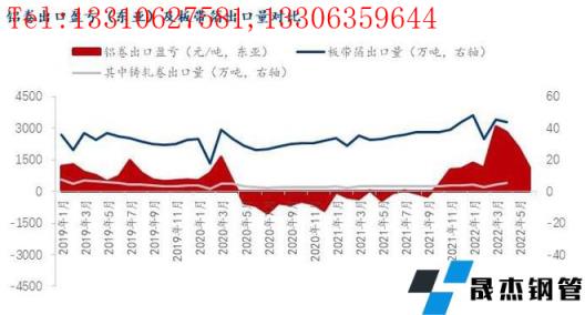 而在板帶箔出口方面,我們從下圖數據可以看到,在鋁卷出口利潤為負的時候,板帶箔仍維持較高水平的出口量。