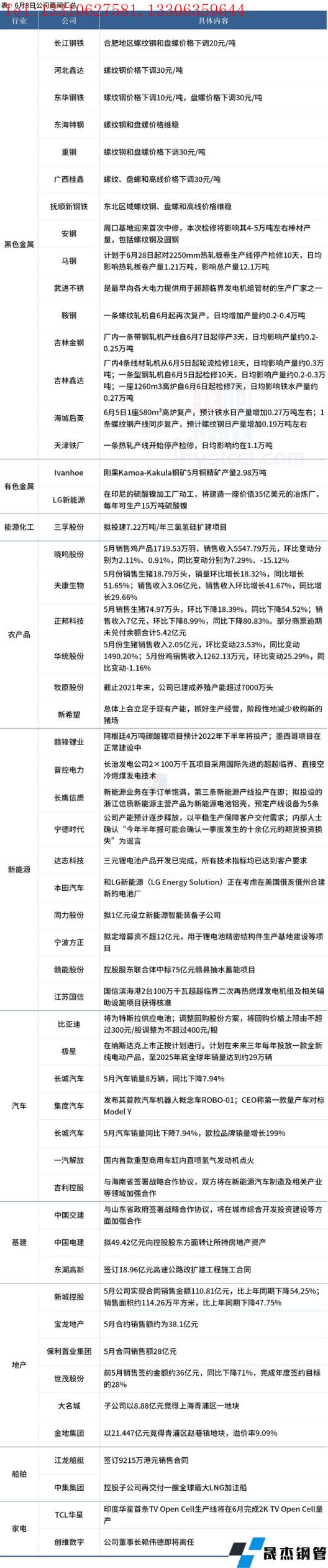 6月9日,匯總部分大宗商品相關企業要聞。